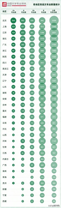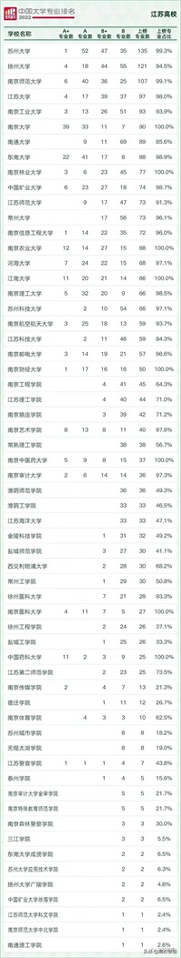 均衡发展,每个层次的专业数量江苏都挤进了全国前三。其中,A+专业数164个,A类专业数471个,B+专业数581个,B类专业数1285个。
