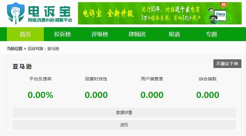 此外,“电诉宝”受理用户维权案例显示,“亚马逊中国”还存在疑似虚假促销、货不对板、商品质量、霸王条款、退换货难等问题。