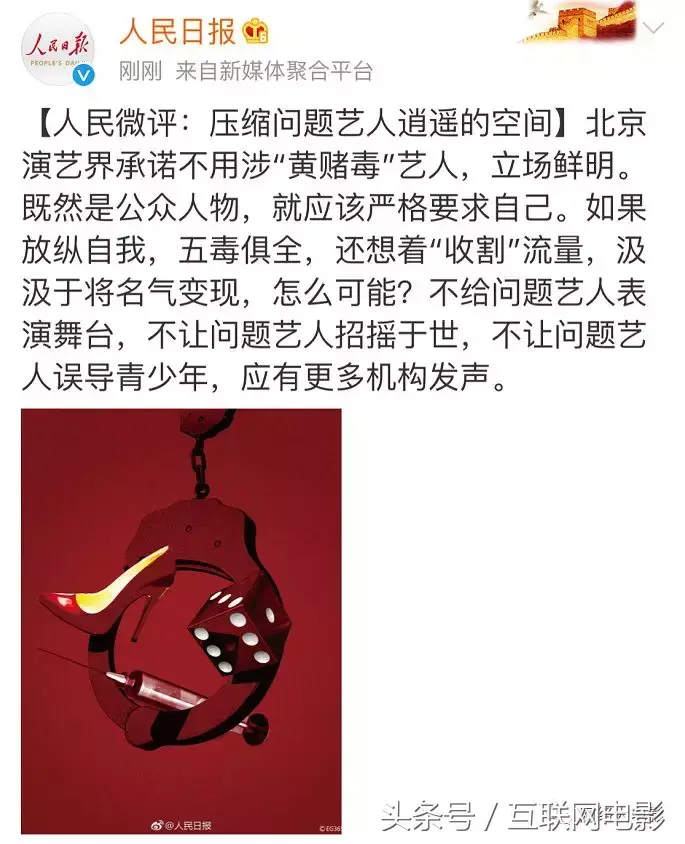 《人民日报》更是连续发表评论:不给问题艺人表演舞台,不让问题艺人招摇于世,不让问题艺人误导青少年……