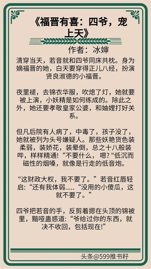 清穿福晋文《福晋有喜:四爷,宠上天》强推第一本