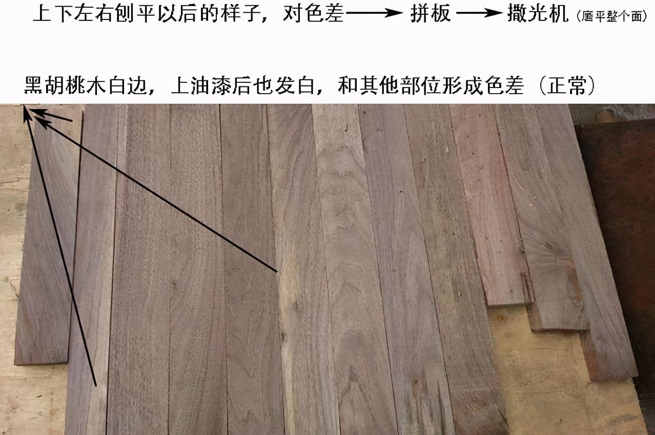 拼板后有正反面,比如桌面,正面向上,反面向下,反面一般色差会比较大,也有结疤等,这才是真货,如果两面一样完美,那是帖皮的。有的人买了实木的,还要求两反一样好,这就太为难人了。