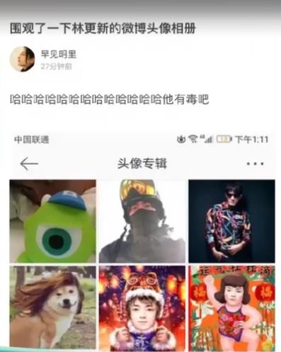 看到该条微博后,小编迫不及待的翻了下林更新的微博头像相册,简直笑到喷饭呀!